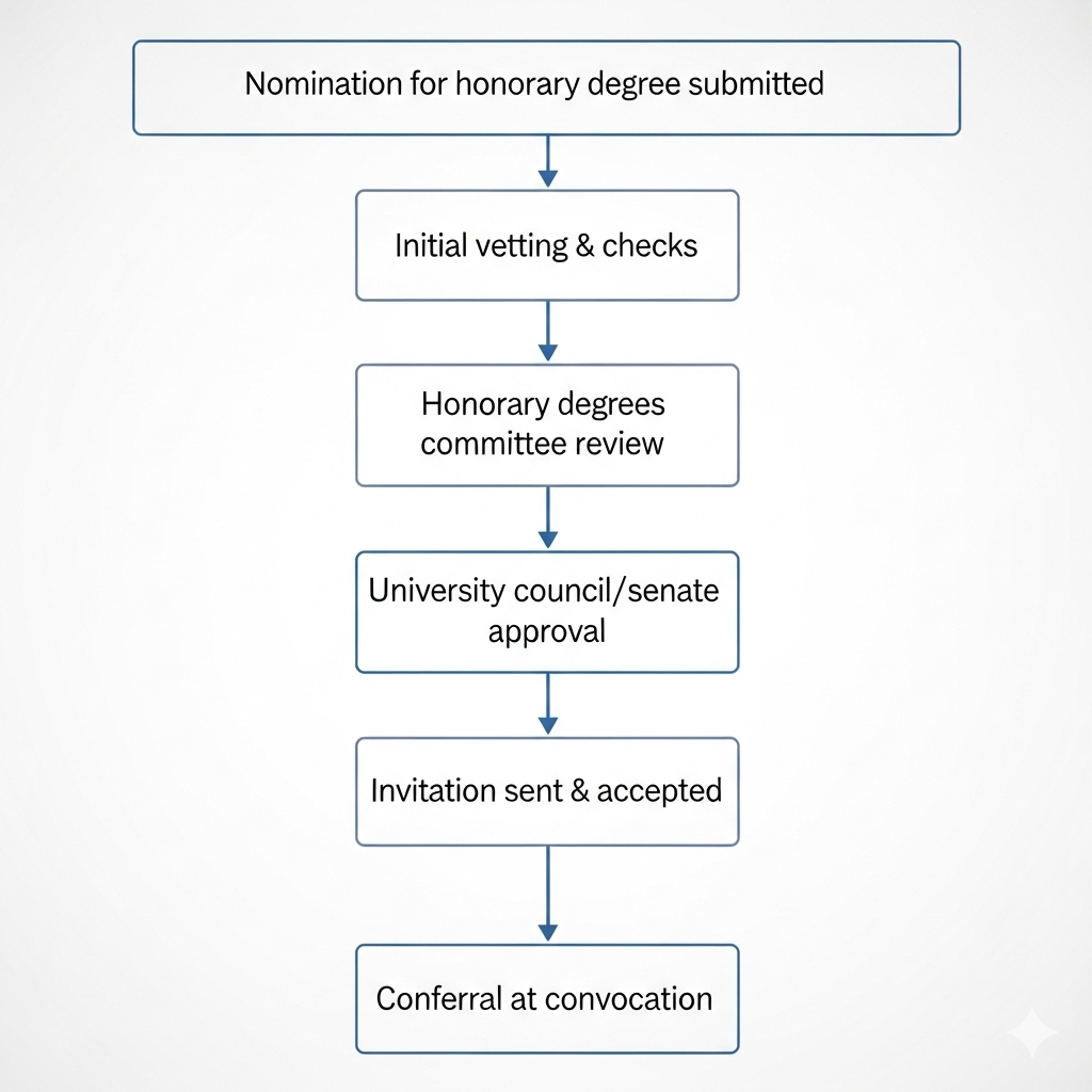In the sections ahead, we’ll follow the journey of an honorary doctorate: how a nomination is made, the checks and decisions that follow, and finally the graduation ceremony where the award is given. We’ll highlight the distinction between these honours and formal degrees and tackle common questions.