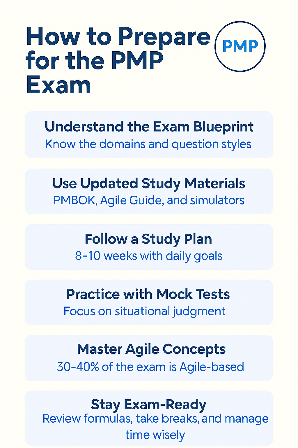 Getting a PMP feels like unlocking a career level — but it’s not magic. It’s a process: eligibility checks, focused training (the 35 contact hours), steady practice, a careful application, and disciplined exam prep. Below is a full, humanized, practical guide you can use as a roadmap, checklist, and study companion. This is a fairly comprehensive guide—it covers what most people look for first, then walks through the steps they’ll need to take next.